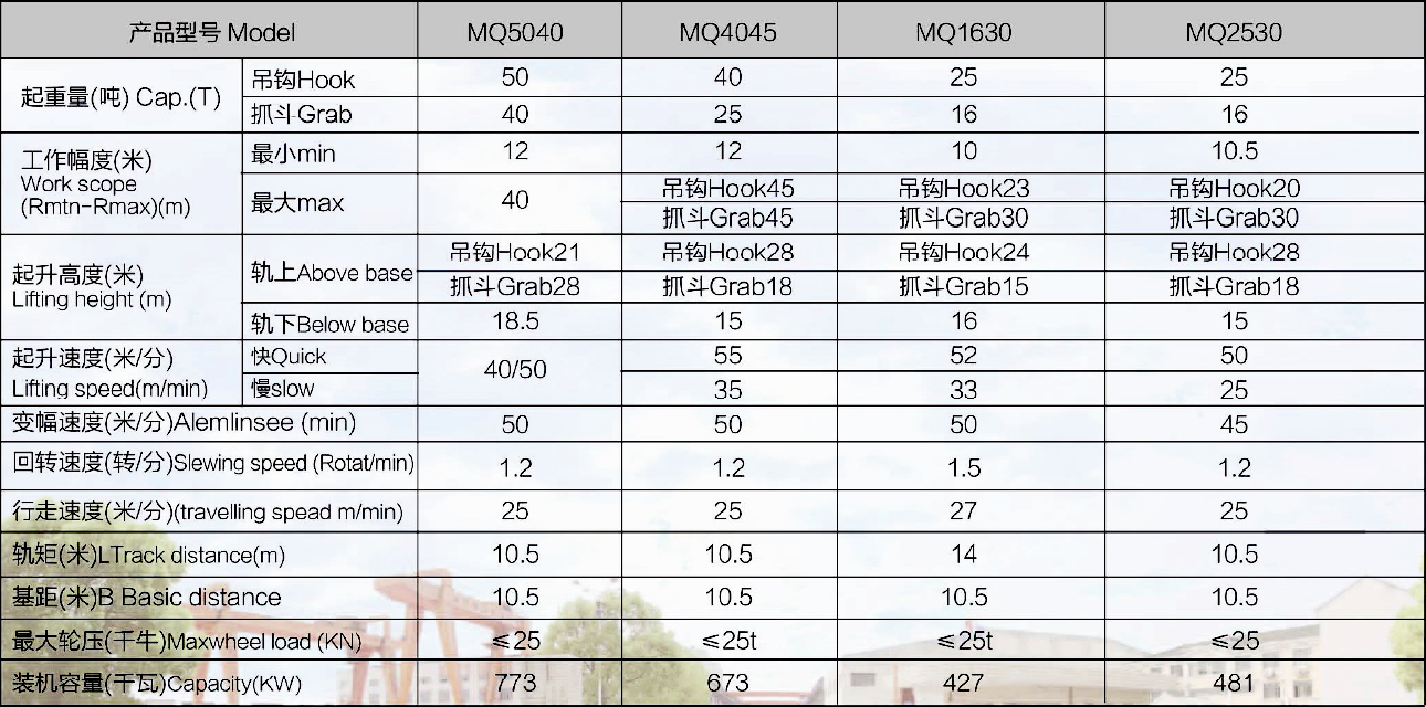 港口門座起重機(jī)是港口碼頭前沿裝卸用起重設(shè)備,主要用于海港江河港碼頭及貨物的裝卸作業(yè)。結(jié)構(gòu)形式采用圓筒體門架,四連桿臂架齒條變幅,直臂齒條變幅,直臂架鋼絲繩變幅,具有工作幅度大速度快,裝卸效率高等特點(diǎn)。